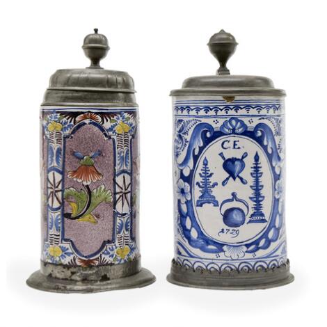 2545/264To tyske lågkrus af fajance med montering af tin. 18. årh. (2)