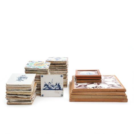 2545/332En samling hollandske fliser af fajance, dekoreret i mangan og blå. Bestående af i alt 43 løse fliser og 19 i ramme. 18./19. årh. (62)