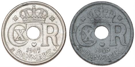 2545/517410 øre 1945 N, H 27, og 10 øre 1947 N, H 26B, in total 2 pcs