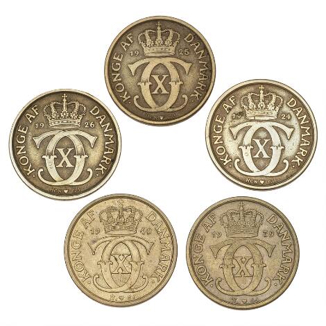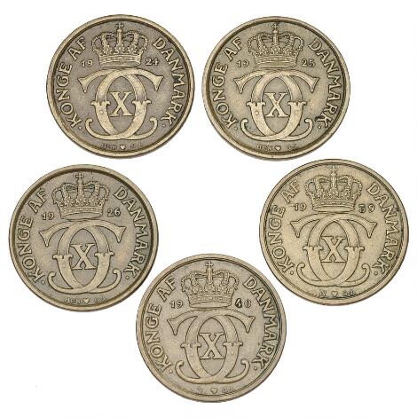 2545/5199Christian X, 2 kr 1924, 7 pcs., 1925, 27 pcs., 1926, 12 pcs., 1936, 6 pcs., 1938, 9 pcs., 1939, 24 pcs., 1940, 13 pcs., 1941, 7 pcs., H 20A, 20B. (105)