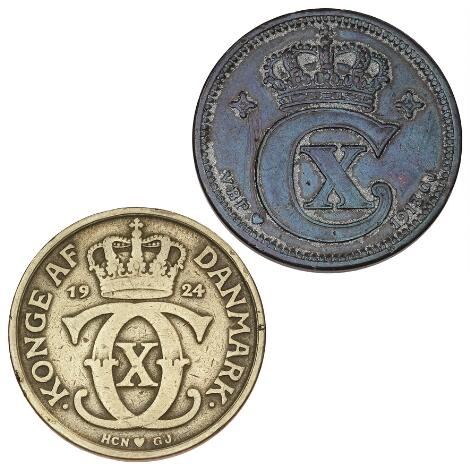 2545/51691 kr 1924 HCN, H 21A, 5 øre 1913 VBP, H 14A, traces of silvering, in total 2 pcs