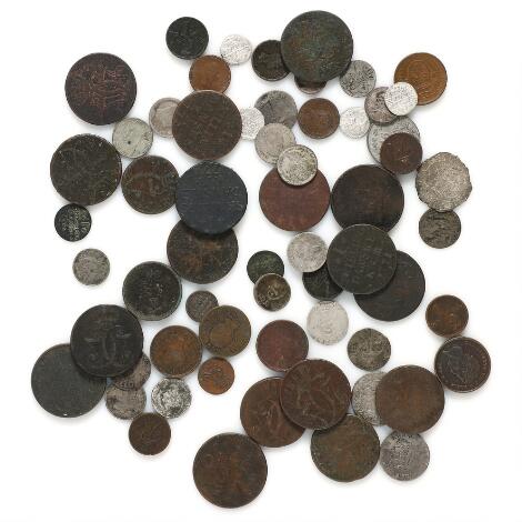 2545/5205Collection of skilling er from Christian IXV and onwards, i.a. several cleaned 1 skilling 1620 and 1621 as well as 1 skilling 1771, in total 61 pcs