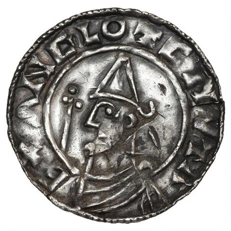2545/5216England, Aethelred II, 978–1016, Winchester, Penny, Long Cross type, c. 997–1003, moneyer, Aethelgar, 1.72 g, North 774, S 1151, wavy flan, peck-mark