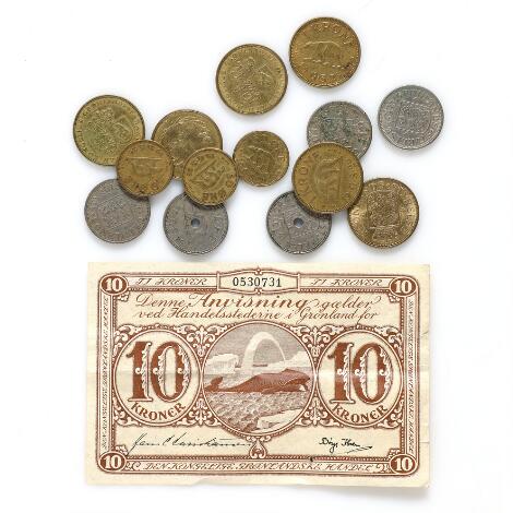 2545/5207Greenland, collection of coins, as well as banknote, in total 15 pcs