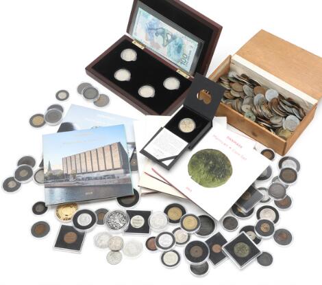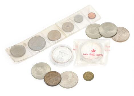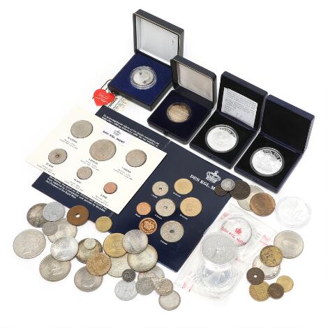 2545/5195Collection of Danish and foreign coins, incl. commemoratives (13 pcs), a few 2 kr and other medals and coins in silver, etc.