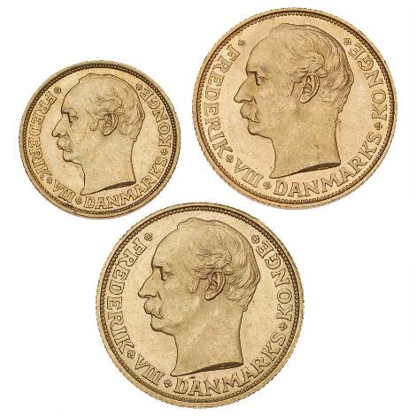 2545/515920 kr 1910 VBP, 1911 VBP, H 1, F 297, 10 kr 1909 VBP, H 2, F 298, in total 3 pcs