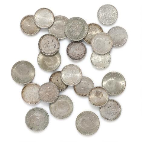 2545/5197Album with skillinger, i.a. 24 skilling 1763, H 35B, rigsbankdaler 1847 VS, H 4A, drigsdaler 1854 VS, H 8A, etc., in total 27 pcs