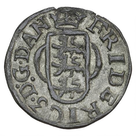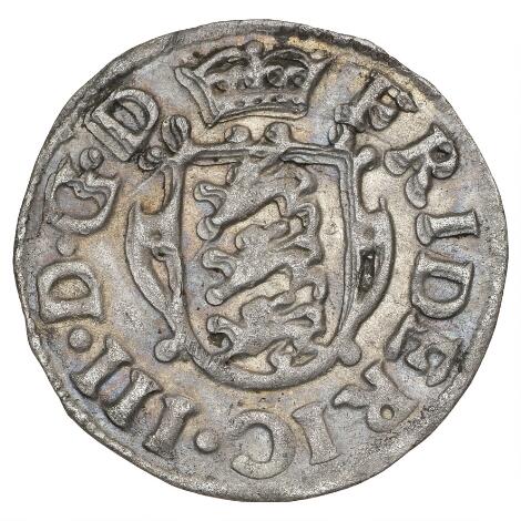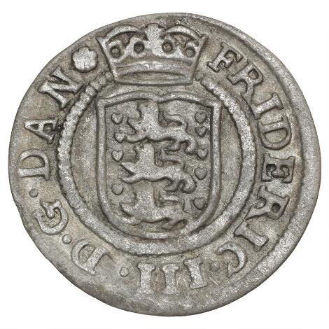 2545/5111Frederik III, 2 skilling 1653, H 130A, Aagaard 37a, Sieg 16.1 - sjælden type med ring om skjoldet