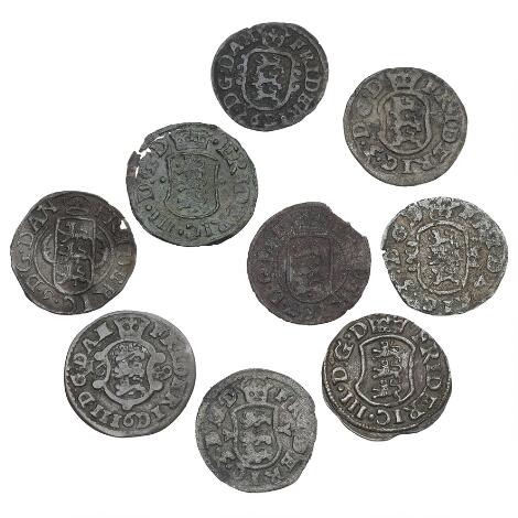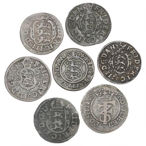2545/5123Frederik III, samling af 1 skillinge, i alt 9 stk.