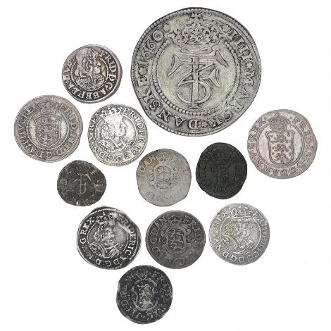 2545/5125Frederik III, samling af mønter, i alt 12 stk.