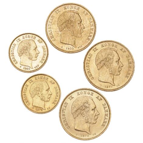 2545/514520 kr 1873 CS, 1877 CS, 1900 VBP, H 8A-B, F 295, 10 kr 1873 CS, 1900 VBP, i alt 5 stk.