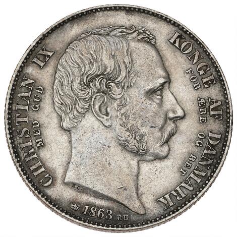 2545/5143Christian IX, 2 rigsdaler 1863 RH, "Tronskiftespecie", H 3, kanthak
