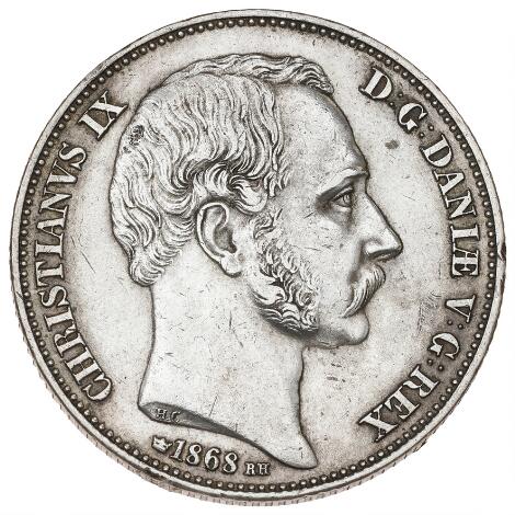 2545/5144Christian IX, 2 rigsdaler 1868 RH, H 4A, kanthak