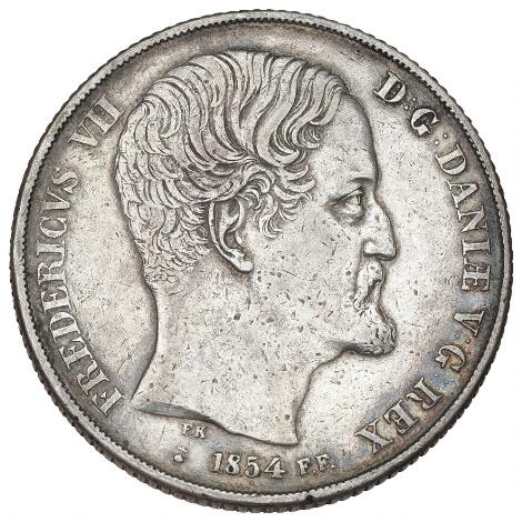2545/5142Frederik VII, 2 rigsdaler 1854 FF, H 6B, ar og kanthak