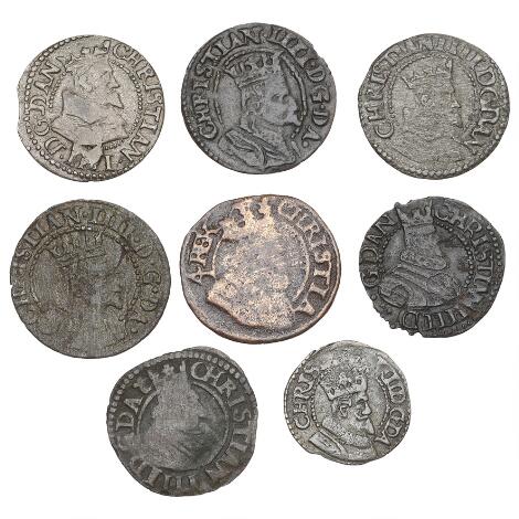 2545/5099Christian IV, lille specialsamling af søslinge, i alt 8 stk. - alle forskellige