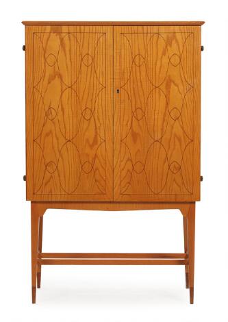 Carl-Axel Acking, ascribed to: Art Deco cabinet of elm wood inlaid with marquetry. 1940-50s. H. 130. W. 84. D. 42.