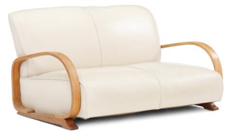 Heal's & Son: Sofa of oak. Seat and back upholstered with light coloured leather. L. 125.