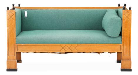Danish cabinetmaker: Birch sofa with inlays. Seat, sides and back upholstered with green wool. Made 1920s. H. 81 cm. L. 161 cm. D. 81 cm.