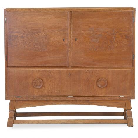 Arts & Crafts – Furnishers Decorators: Sideboard of mahogany with inlays. Front with doors and drawers.