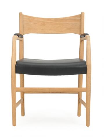 2549/951Hans J. Wegner: "Town Hall Chair". Armchair with oak frame, seat and armrests upholstered with black leather. Model B121.