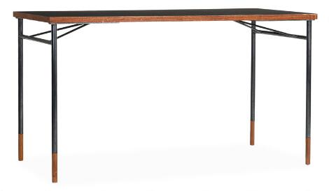 2549/932Finn Juhl: Rectangular table with steel base. Nutwood table edge and "shoes". H. 72 cm. L. 130 cm. W. 65 cm.