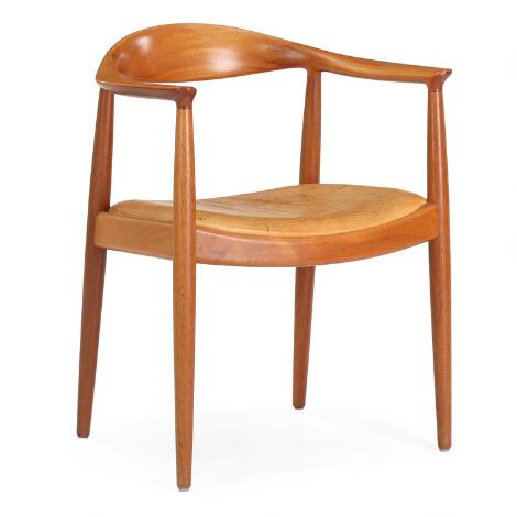 2549/950Hans J. Wegner: “The Chair”. Mahogany armchair. Seat upholstered with patinated, natural leather.