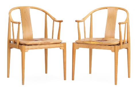 2549/952Hans J. Wegner: “Kinastolen”. A pair of cherrywood armchairs. Seat cushions upholstered with natural leather. (2)