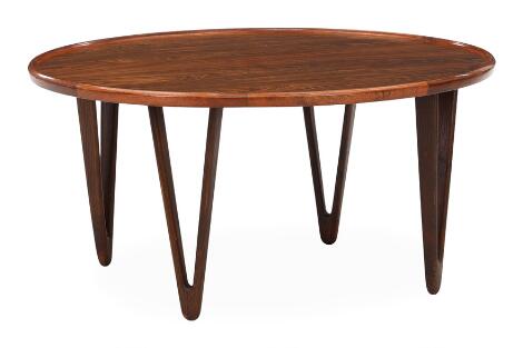 2549/627Tove & Edvard Kindt-Larsen, tilskrevet: Cirkulært sofabord af palisander. V-formede ben, top med kehlet kant.