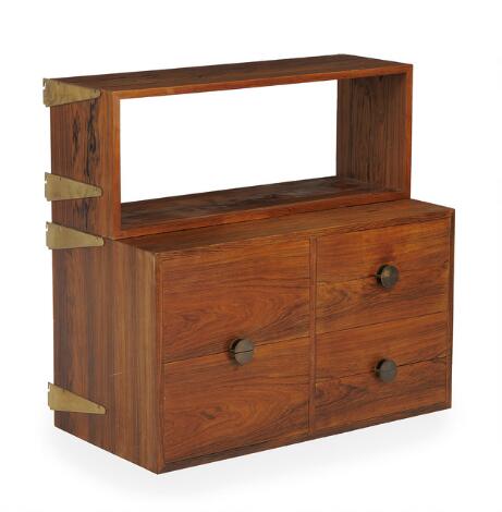 2549/630Finn Juhl: Skuffesektion af hhv. Oregon pine og riopalisander. Bestående af vitrine, fem hylder samt div. hyldeknægte.