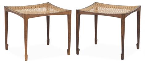 2549/642Bernt: Et par skamler af Riopalisander med flet i sæde. (2)