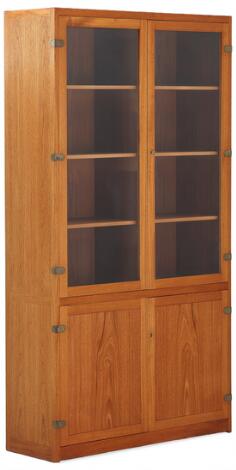 2549/501Børge Mogensen: Vitrineskab af teak. Front med to låger og to glaslåger. Messingbeslag.