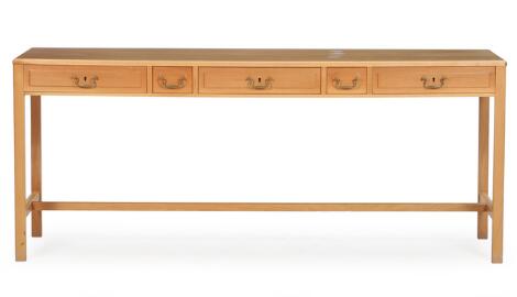 2549/584Dansk snedkermester: Konsol af nøddetræ, front med to mindre og tre større skuffer. H. 75. B. 180. D. 50.