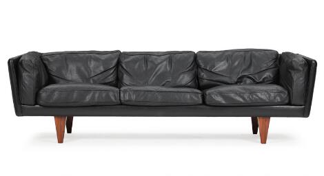 2549/518Illum Wikkelsø: Tre-personers sofa med ben af palisander, betrukket med sort skind. Model V. 11. L. 225.