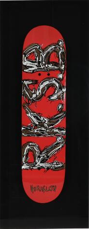 332/40LyngbyKristian von Hornsleth: "R.K.S.B"." Signed Hornsleth. Miuxed media on skateboard. Frame size 120 x 60 cm.