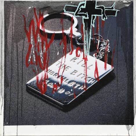 332/67LyngbyKristian von Hornsleth: "Kill the Bitch". Signed Hornsleth. Acrylic on canvas. 80 x 80 cm. Unframed.