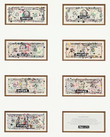 332/53LyngbyKristian von Hornsleth: "Love Hate Money". All signed Hornslet and numbered. Painted dollars. Visible size 71 x 59 cm.