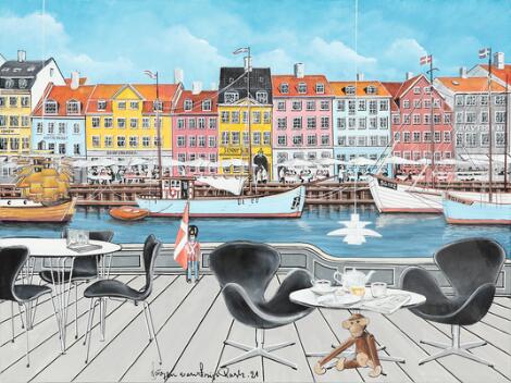 332/110LyngbyJørgen von Frijs Rask: Scenery from Nyhavn. Signed Jørgen von Frijs Rask. Acrylic on canvas. 90 x 120 cm.