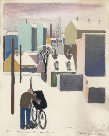 2549/737Wiliam Skotte Olsen: Untitled. Signed WSO. Oil and watercolour on paper. Sheet size 51 x 76 cm. Unframed.