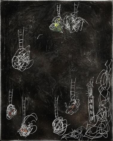2549/816Arne Haugen Sørensen: "Petit Mort / Grande Mort". Signed A. Haugen Sørensen. Oil on canvas. 100 x 81 cm.