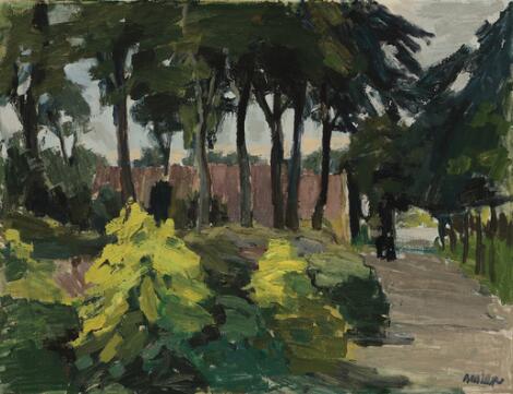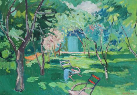 2549/669Axel P. Jensen: Garden scenery. Signed Axel P. J. 45. Oil on canvas. 90 x 125 cm.