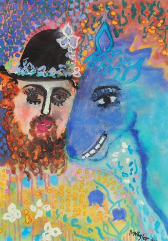 2549/842Marianne Miriam Nagler: Man and horse, 1984. Signed Gouache and watercolour on paper. Visible size 29 x 20,5 cm.