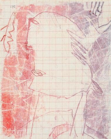 2549/795Peter Holst Henckel: Untitled. Signed Henckel 92. Mixed media and silkscreen on paper. Sheet size 56 x 76 cm. Unframed.