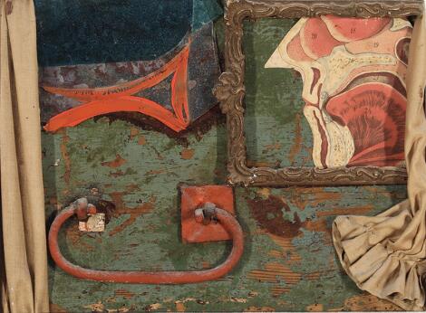 2549/757Poul Lillesøe: "Anatomik". Signed Lillesøe 1977; signed on the reverse with title. Collage on board. 28 x 36 cm.