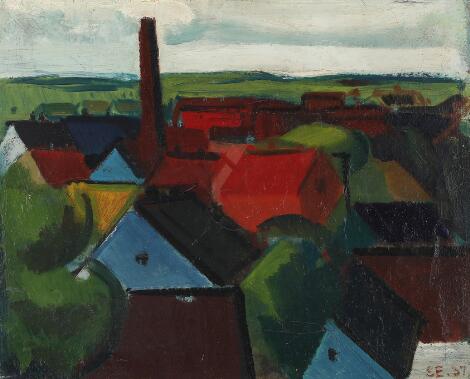 2545/675Svend Engelund: View over rooftops, 1937. Signed and dated SE, 37. Oil on canvas. 56 x 73 cm.