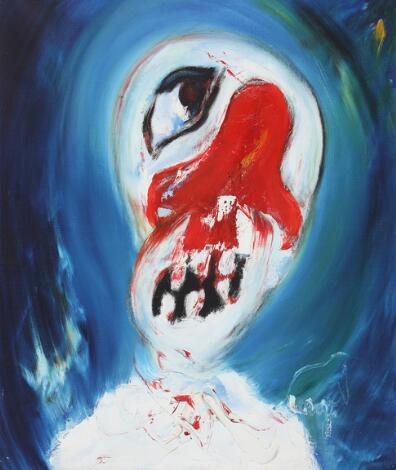 2545/649Kehnet Nielsen: "La Croix", 2006. Signed on the reverse. Oil on cavnas. 85 x 85 cm.