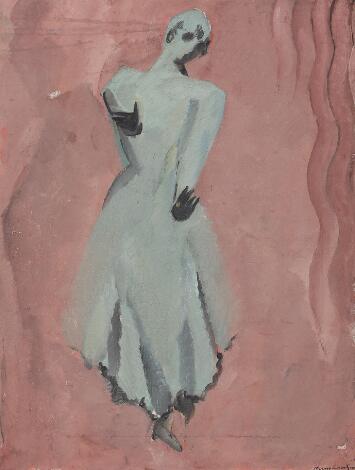 2545/7024Vilhelm Bjerke-Petersen: Standing woman in doorway, 1928. Signed v.b-p-28. Pastel on paper. Visible size 34 x 25 cm.