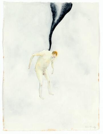 2545/562Michael Kvium: Untitled. Signed Kvium 87. Watercolour and pencil on paper. SHeet size 34 x 25 cm.