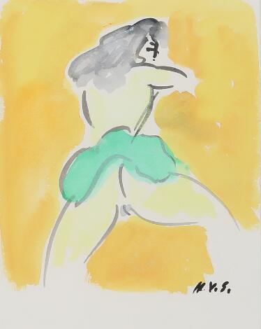 2545/671Hans Voigt Steffensen: Female nude. Signed H. V. S. Watercolour and gouache on paper. Sheet size 21 x 16 cm.