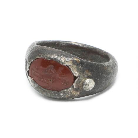 2545/5028Roman Empire, silver ring with carneol intaglio, probably depicting Pax, internal diameter of about 17 mm