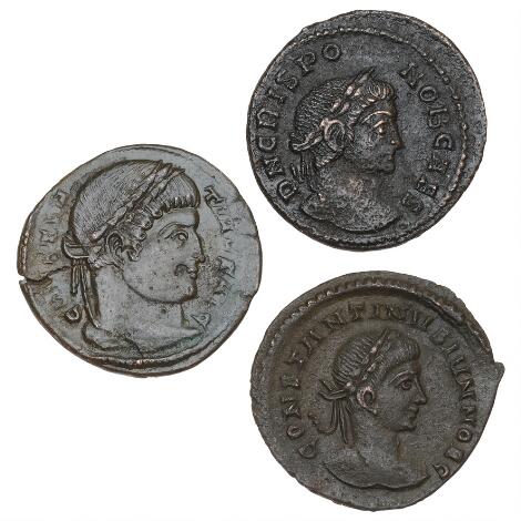 2545/5021Roman Empire, Constantinus I, Follis, Trier, RIC 429, Constantinus II, Caesar, 316-337, Follis, Londinium, IC 292, Crispus, Caesar, 316-326...